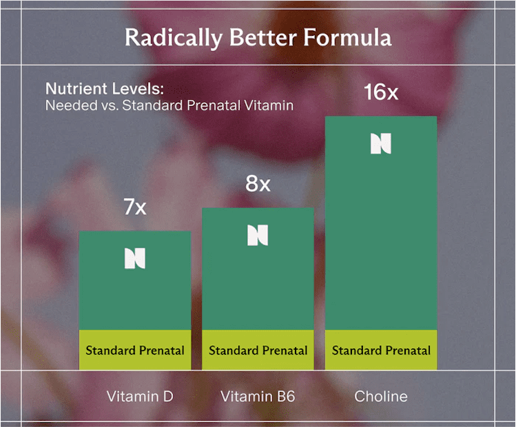 Needed Prenatal Multi provides 8x more nutrition than leading prenatals and 5x more nutrition than outdated Recommended Dietary Allowances*